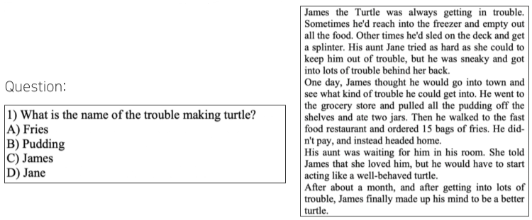MRC 종류로 MCTest, RACE, ARC, 등이 존재