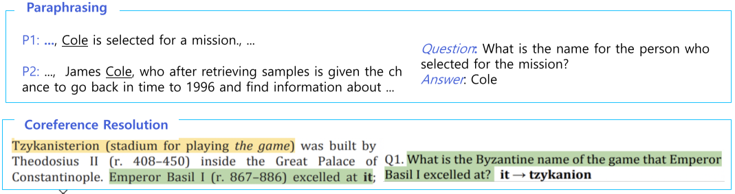 Annotaion Bias란, ODQA 학습 시 기존의 MRC 데이터셋 활용시, ODQA 세팅에는 적합하지 않음 bias가 데이터 제작 (annotation) 단게에서 발생 가능
