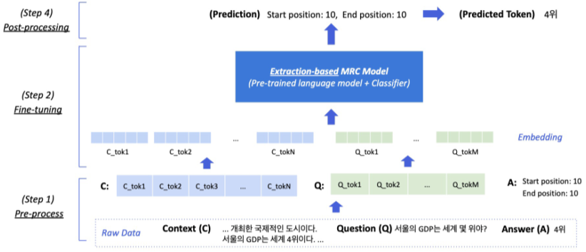 질문(question)의 답변(answer)이 항상 주어진 지문(context)내에 span으로 존재하는 문제