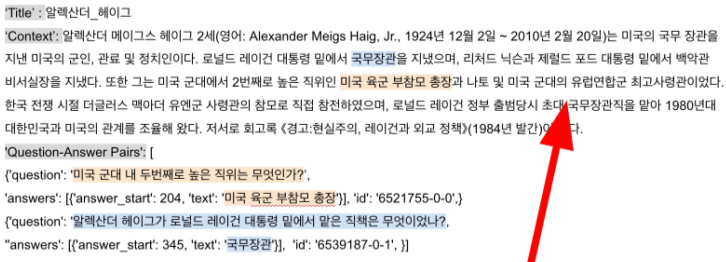 Title과 Context, Question-Answer Pairs로 이루어져 있다.