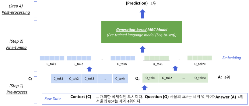Text를 생성하는 것이 아니라, 답의 시작점과 끝점을 찾는 문제가 된다.