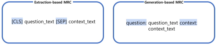 Text-to-Text format에서는 각 입력값(질문)과 출력값(답변)에 대한 설명을 맨 앞에 추가함.