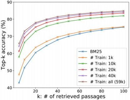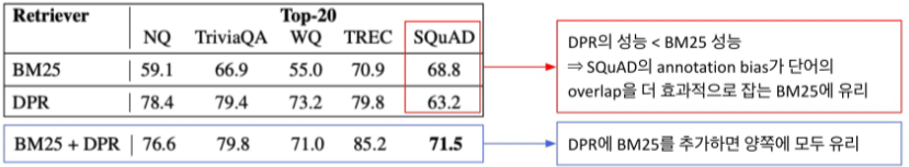 (BM25 : Sparse embedding / DPR : dense embedding)