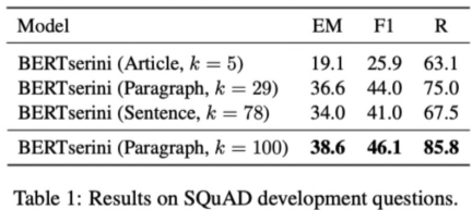 Phrase retrieval 방식은 발표 당시에는 약간의 성능 상승과 대단히 큰 inference speed를 자랑했었지만, Decomposability gap이 불러오는 효과로 최근 발표된 Retrieval-Reader 방식의 연구들 보다 성능이 뒤쳐지며, Storage 용량을 크게 필요로 한다는 단점을 가지게 된다.