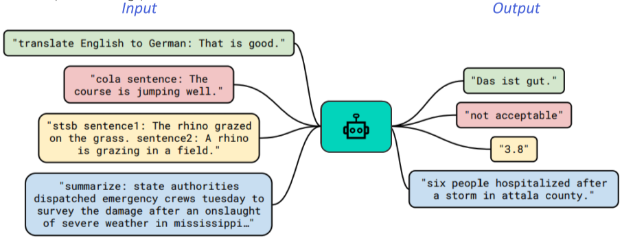 • Machine translation의 경우, prefix로 translate A to B (A: source language/ B: target language)를 통해 가능