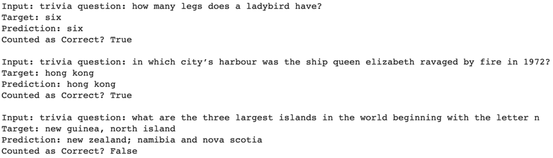 ex) Input: trivia question :how many legs does a ladybird have? Trget: six