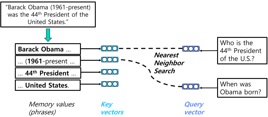 미리 계산된 key vector와 Query vector를 비교하여 답을 구하게 된다.