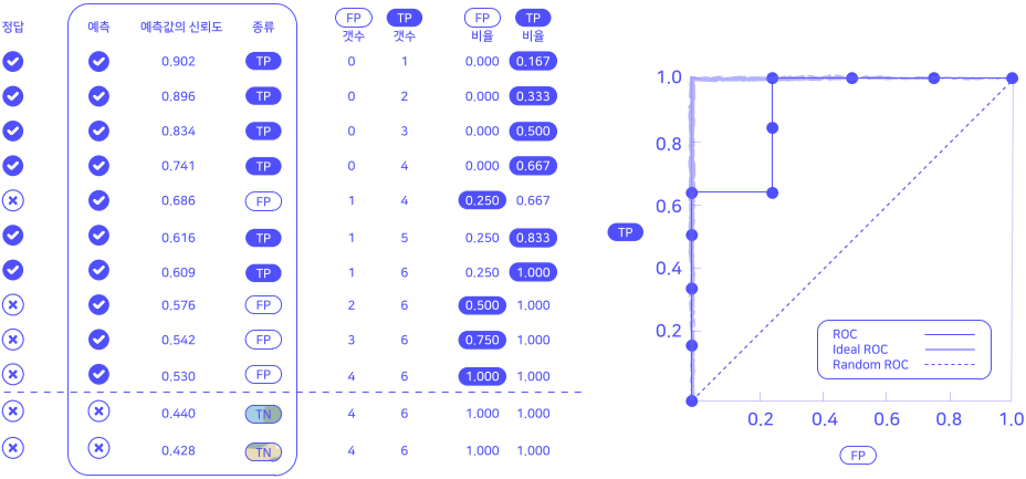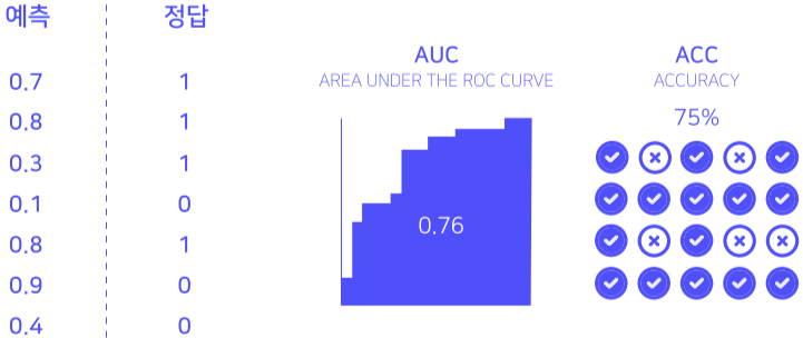 ๋ถ๋ฅ ์๊ณ๊ฐ ๋ถ๋ณ, ์ด๋ค ๋ถ๋ฅ ์๊ณ๊ฐ์ด ์ ํ๋์๋์ง์ ์๊ด์์ด ๋ชจ๋ธ์ ์์ธก ํ์ง์ ์ธก์ ํ ์ ์๋ค. (Threshold ๊ด๊ณ ์์)