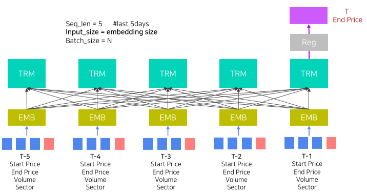 ๋ฌธ์ ๊ฐ ํน์ง์ Transformer๋ก ํ์ ํ๊ณ , ์ผ๋ จ์ Sequece ์ฌ์ด ํน์ง๋ค์ LSTM์ ํ์ฉํด ๋ฝ์๋ธ ๋ค, ๋ง์ง๋ง DNN์ ํตํด Sequence ๋ณ ์ ๋ต์ ์์ธก