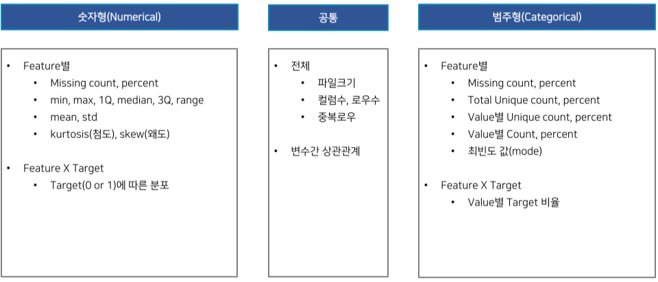 ๋ฒ์ฃผํ์ ๊ฒฝ์ฐ, Missing value, value ๋ณ Count, percent ์ต๋น๋ ๊ฐ ๋ฑ์ ์์๋ณด์.
