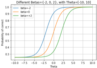 \(\phi(\theta;\beta)=c+\frac{1-c}{1+e^{-(\theta-\beta)}}\\