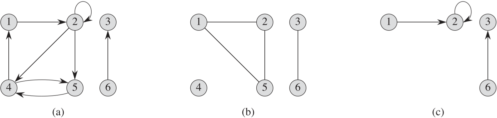 예를 들어 Figure 1 (c)의 그래프는 Figure 1 (a)의 부분 그래프이며, $V’={1,2,3, 6}$이므로 $E’={(1,2), (2,2), (6,3)}$임을 알 수 있다.