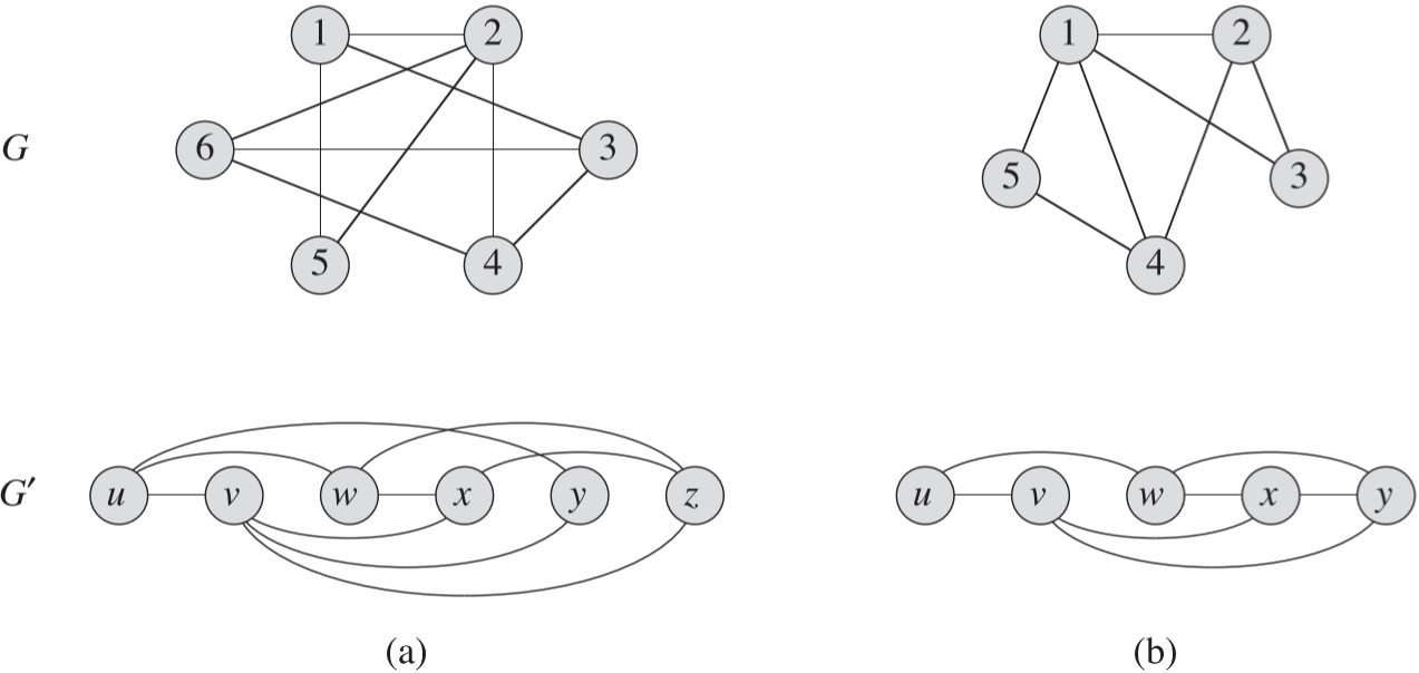 Figure 2 (a)의 위 그래프와 아래 그래프는 정점의 번호만 1,2,…,6와 u,v,…,z로 서로 다를 뿐, 그림 상의 정점의 위치를 조정하고 그에 따라 선분도 조정하면 동일한 모형의 그래프가 된다. 예를 들어 $f(1)=u, f(2)=v … f(6)=z$ 같은 식으로 대입해보면 된다.