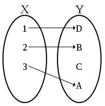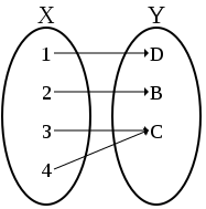 예시로, 함수 $f={(a,b):a,b\in \N\ and\ b=a\mod2}$의 경우, $f:\N \rightarrow {0,1}$로 표현하며, a 값은 b값으로 0 또는 1만 가질 수 있고, b는 많은 수의 a를 가진다.