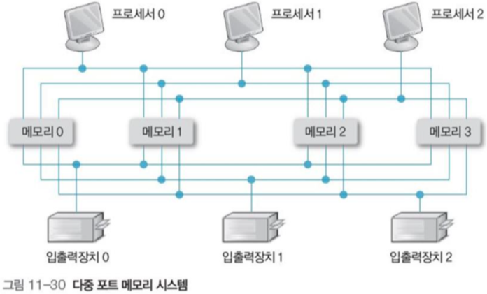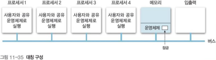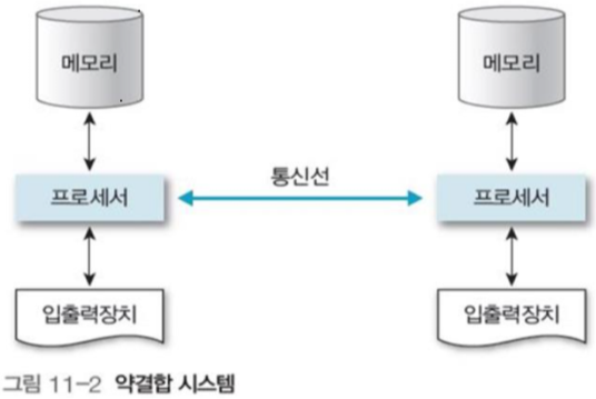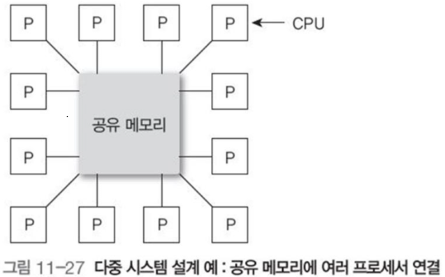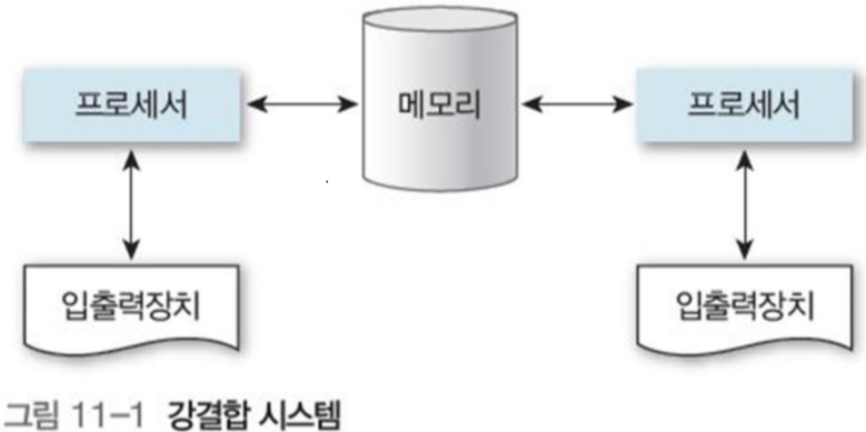 그림 11-1과 같이 프로세서들이 메모리를 공유하는 다중 처리 시스템.