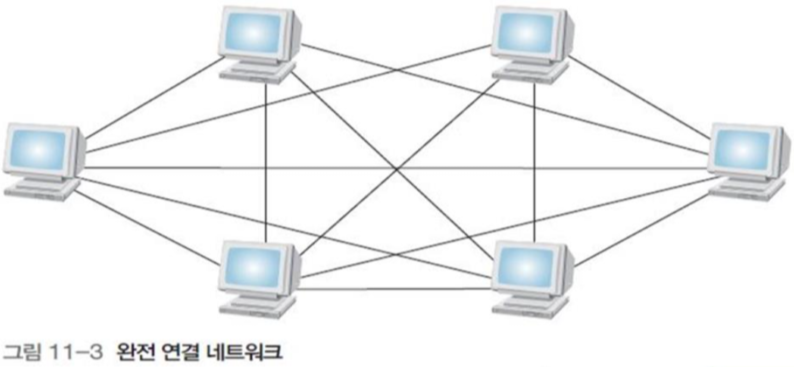 각 노드를 시스템의 모든 노드와 직접 연결하는 완전 연결(fully connected) 방법