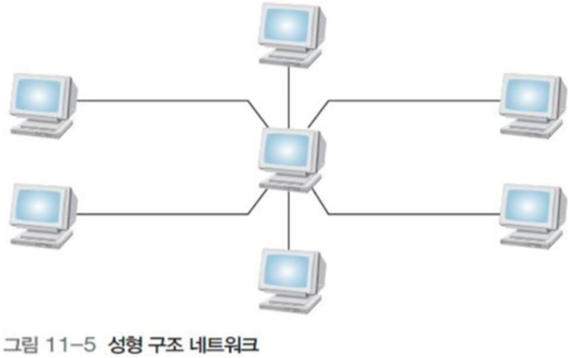 그림 11-5 중앙의 모든 노드의 연결을 중계하는 노드를 중앙 노드라고 하며, 메시지 교환을 담당.