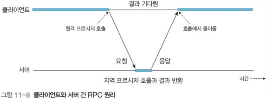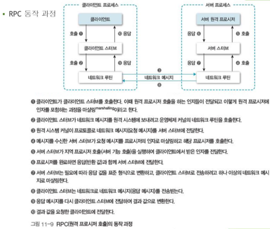 분산 시스템에서 한 컴퓨터에서 실행할 프로세스를 다른 컴퓨터에서실행하는 프로세스의 프로시저(함수)를 호출하는 방법.
