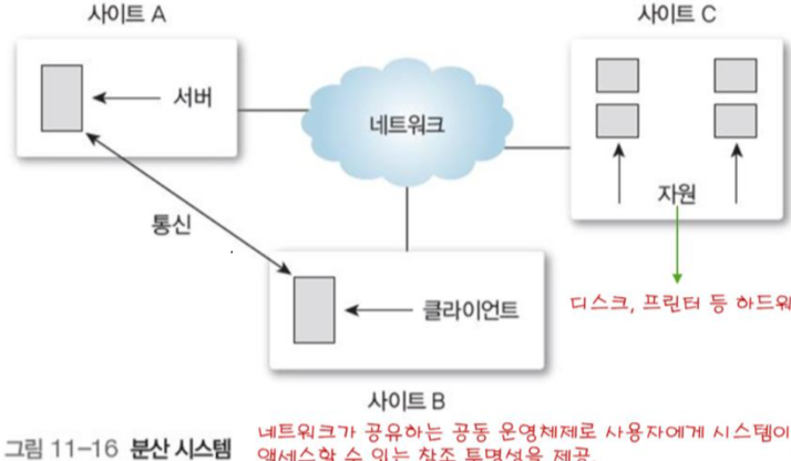 - 분산 시스템에서 네트워크는 원거리의 하드웨어나 소프트웨어 자원에 액세스할 수 있는 기능 제공