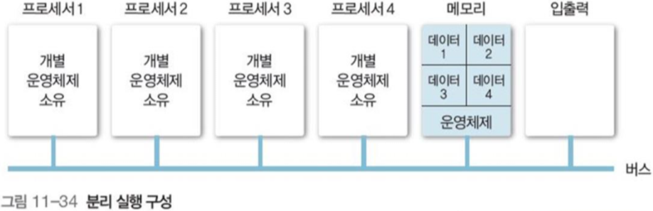 각 프로세서마다 운영체제가 서로 다르며, 각 프로세서에서 발생하는 인터럽트는 해당 프로세서에서 해결하는 구성 방법