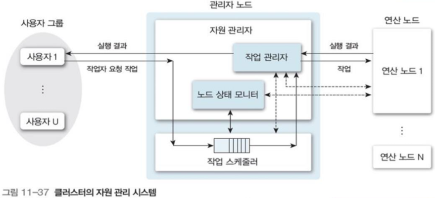 그림 11-37은 고성능 클러스터의 자원 관리 시스템의 예시이다.