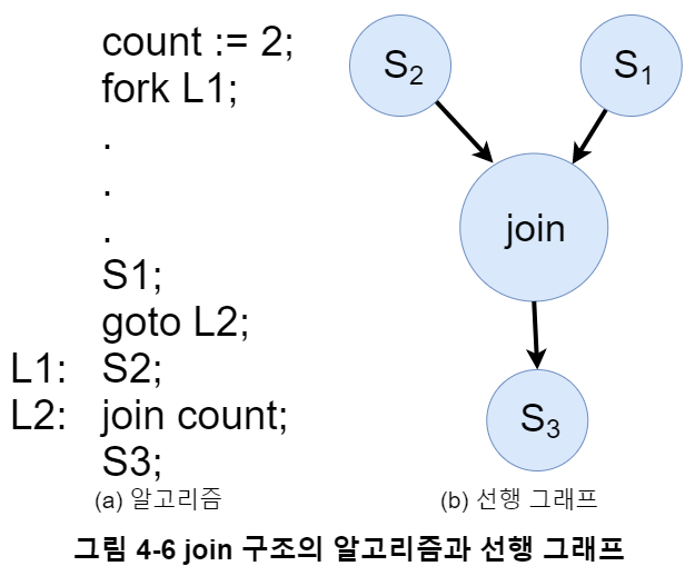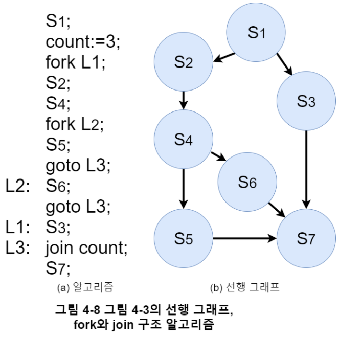 아래 예시 그림 4-5에서는 fork 명령어를 통해 $S_2$와 $S_3$가 병행 수행된다.