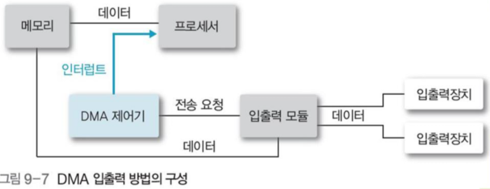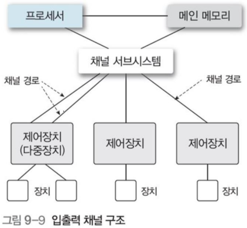 그림 9-1처럼 주변 장치를 직접 시스템 버스에 연결 하지 않고 입출력 제어기로 연결한다.