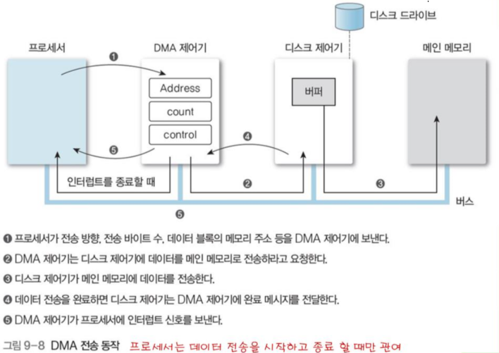 - 버스 우선순위가 높기 때문에 버스와 메모리를 프로세서가 사용할 때 사이클 스틸링 하기도 함.