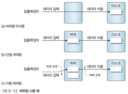 - 메인 메모리와 입출력 장치 간의 속도 간극을 해결하기 위해 버퍼를 이용해 데이터 전송